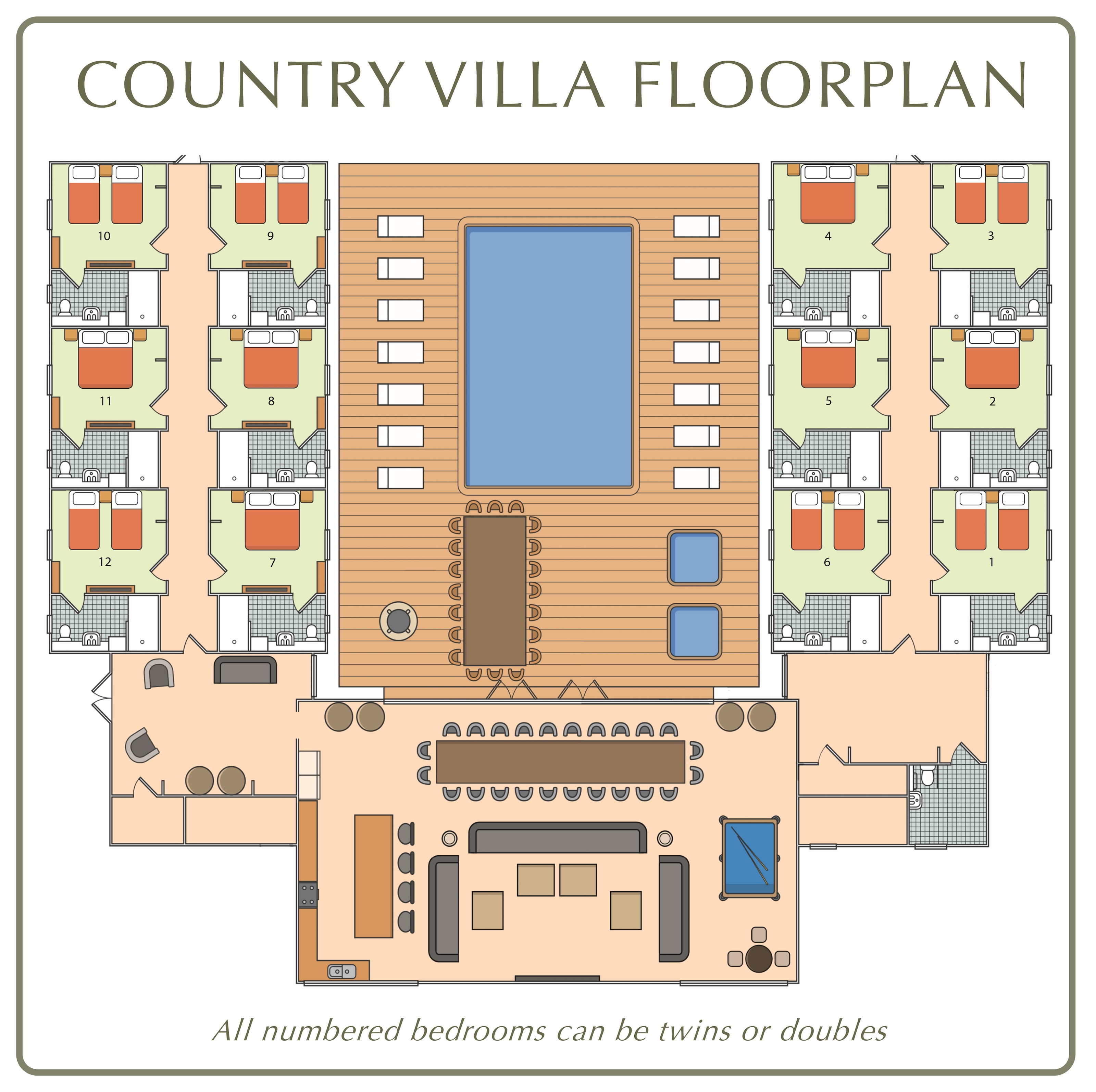 * Six of the twelve bedrooms have the option of twin or kingsize beds