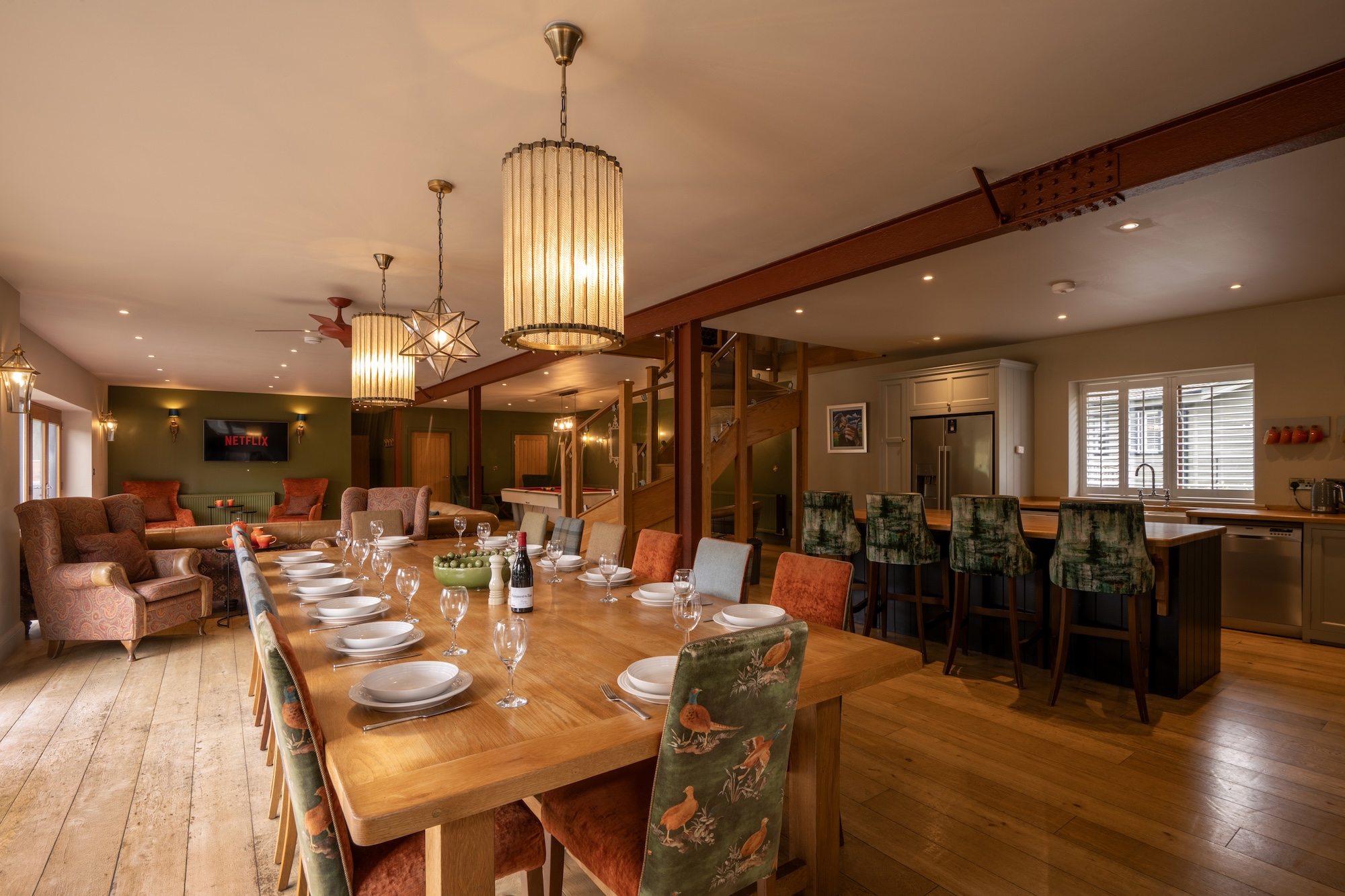 Lincoln Farmhouse is one of our favourite lodges for gathering friends and family thanks to its seven bedrooms, generous garden and huge open plan living, dining and kitchen area.